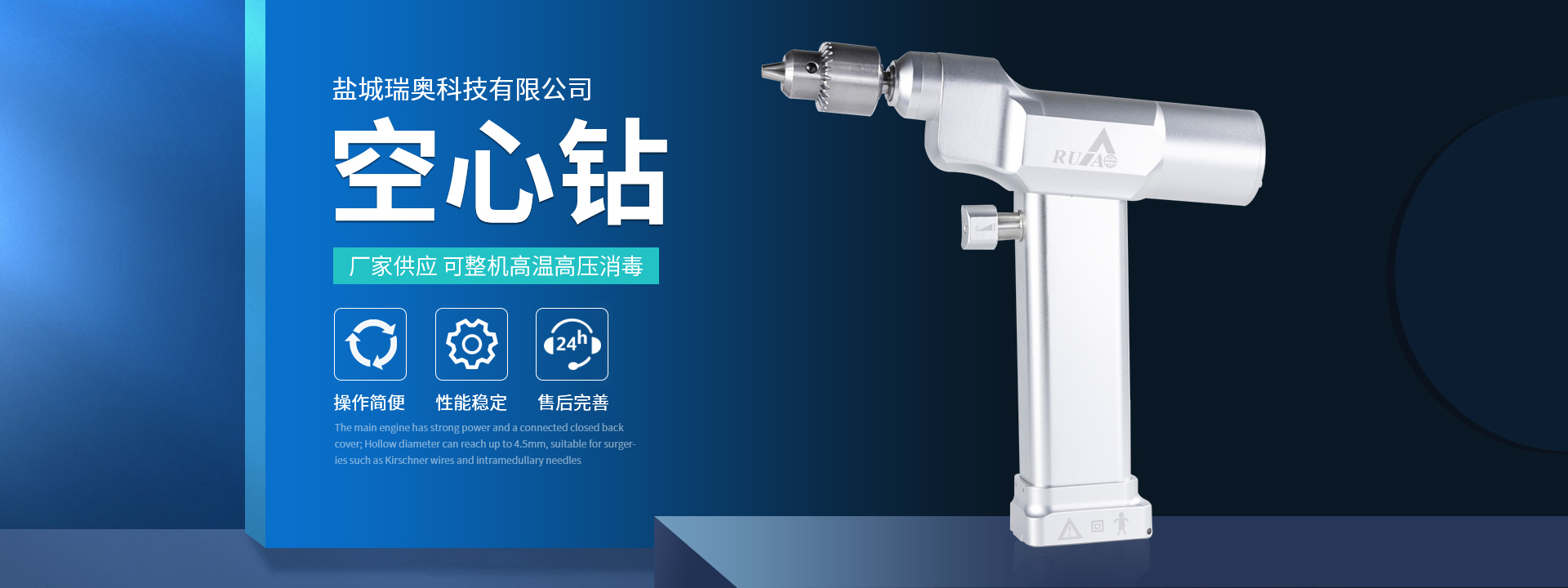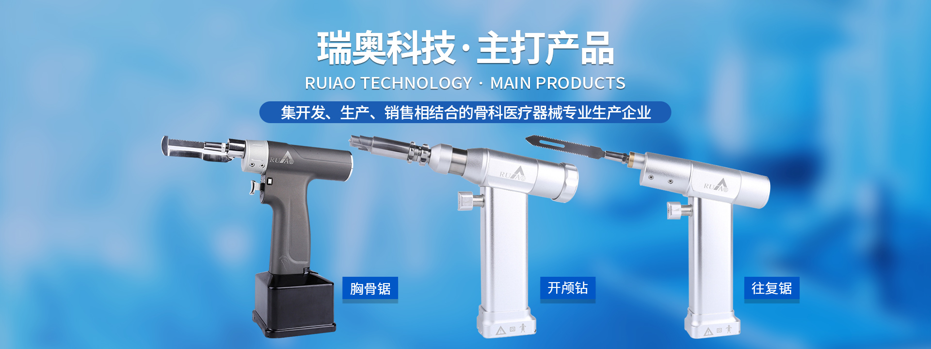 鹽城瑞奧科技有限公司主要產(chǎn)品:醫(yī)用電動鋸鉆系列(可高溫高壓消毒和熏蒸消毒兩種):包含骨鉆、擺鋸、胸骨鋸、空心骨鉆、開顱鉆、顱骨銑等等,適用于骨科、腦外科、神經(jīng)外科、胸外科、手足及顯微外科、脊柱外科、整形外科等各種手術(shù)的要求。電動石膏鋸可切割高分子繃帶、石膏等?;A器械系列:咬骨鉗,髓核鉗,椎板咬骨鉗,持骨鉗,四肢骨折手術(shù)器械包等。